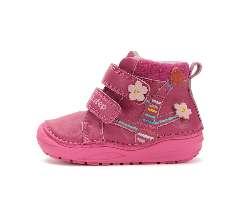 D.D. Step pink alapon oldalán virágos lila gumitalpú bőr bélelt kislány gyerekcipő, bakancs