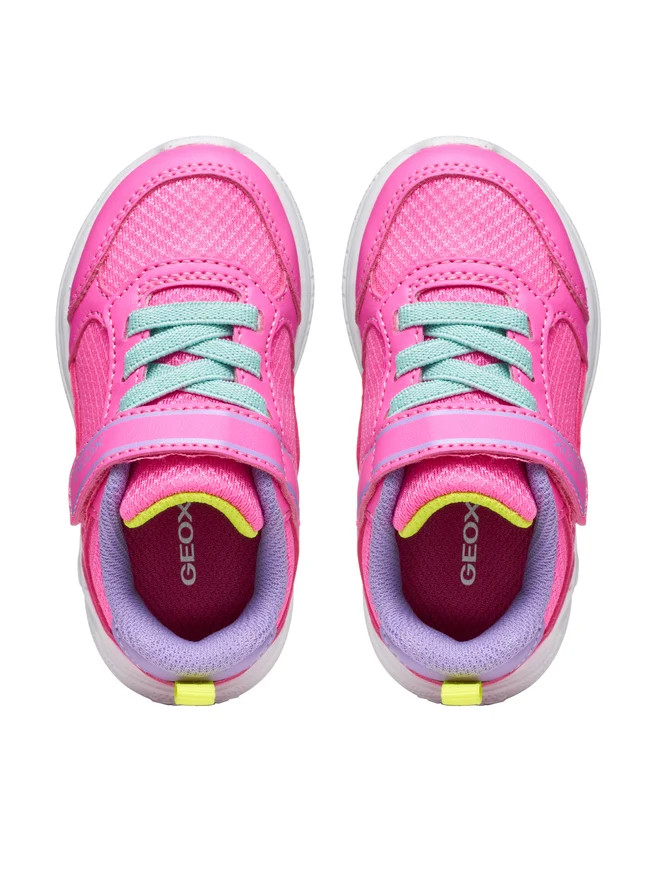 Sportos babacipő párnázott, lélegző kialakítással és futócipő-esztétikával. A Sprintye ezen változata pink színben, kiegészítő pasztell árnyalatokkal kapható, energikus, modern bájjal lenyűgözi a vásárlókat és a kislányokat.