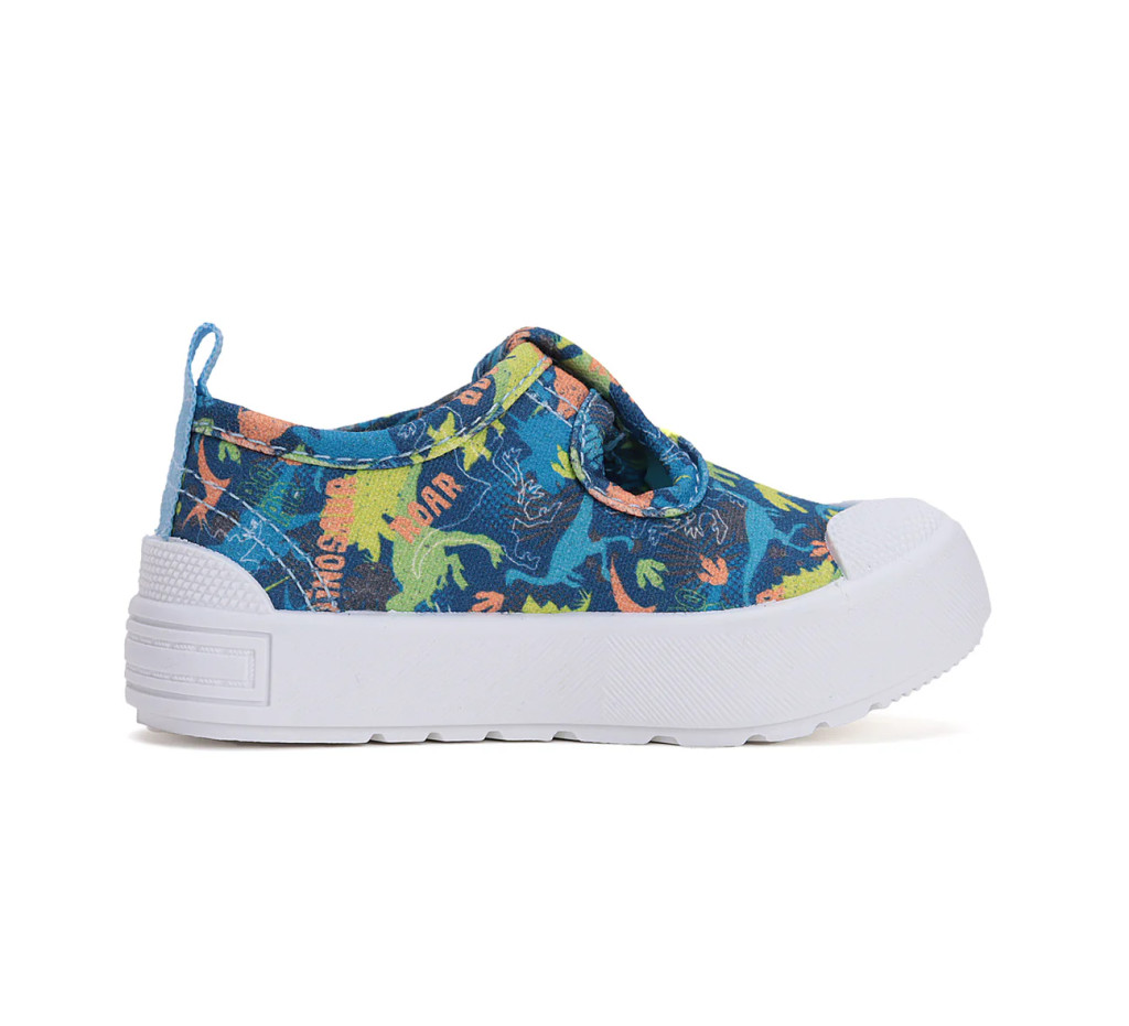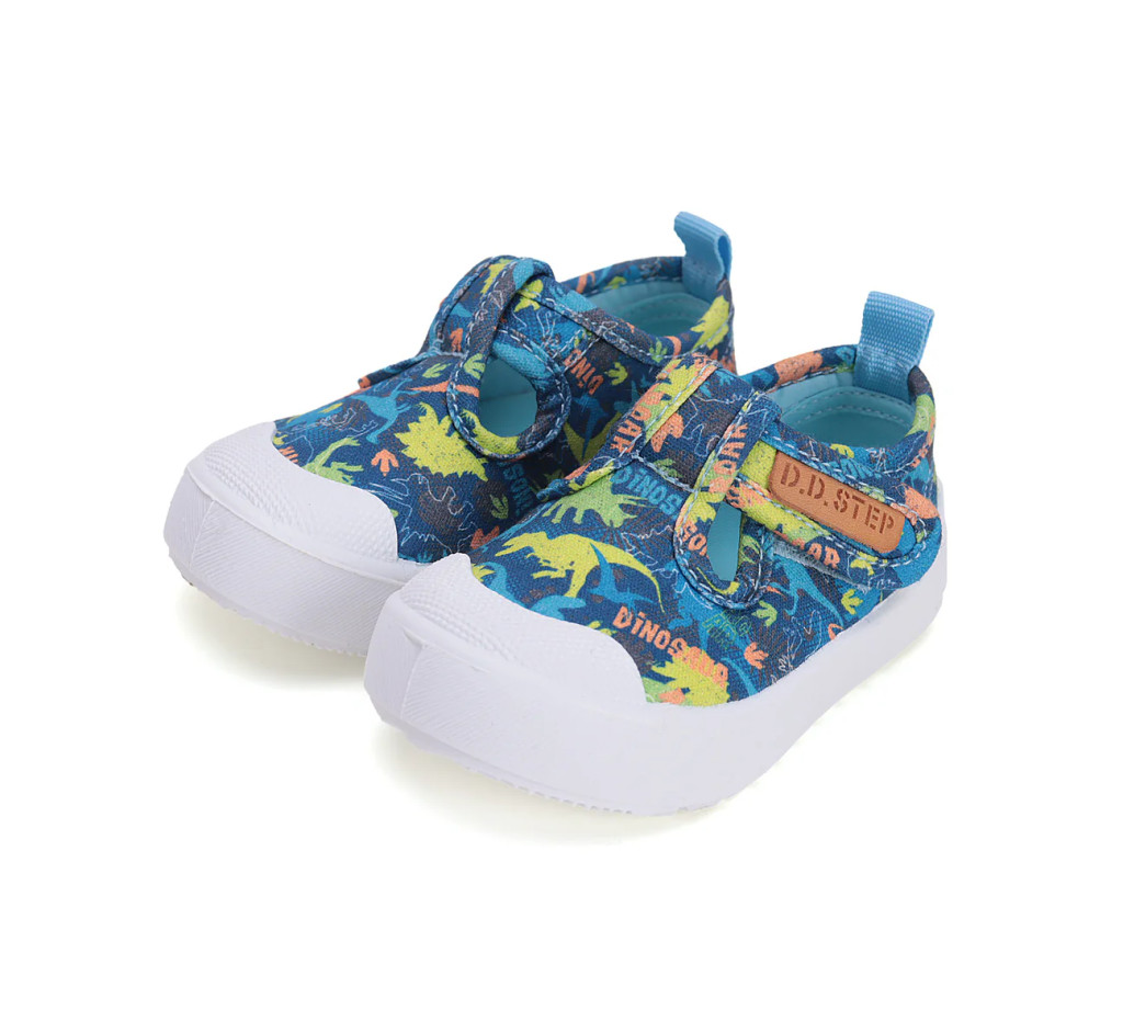 D.D. Step kisfiú benticipő: Dinoszarurusz mintás, könnyű, tépőzáras, hajlékony talpú, pamut vászoncipő C096-51104A