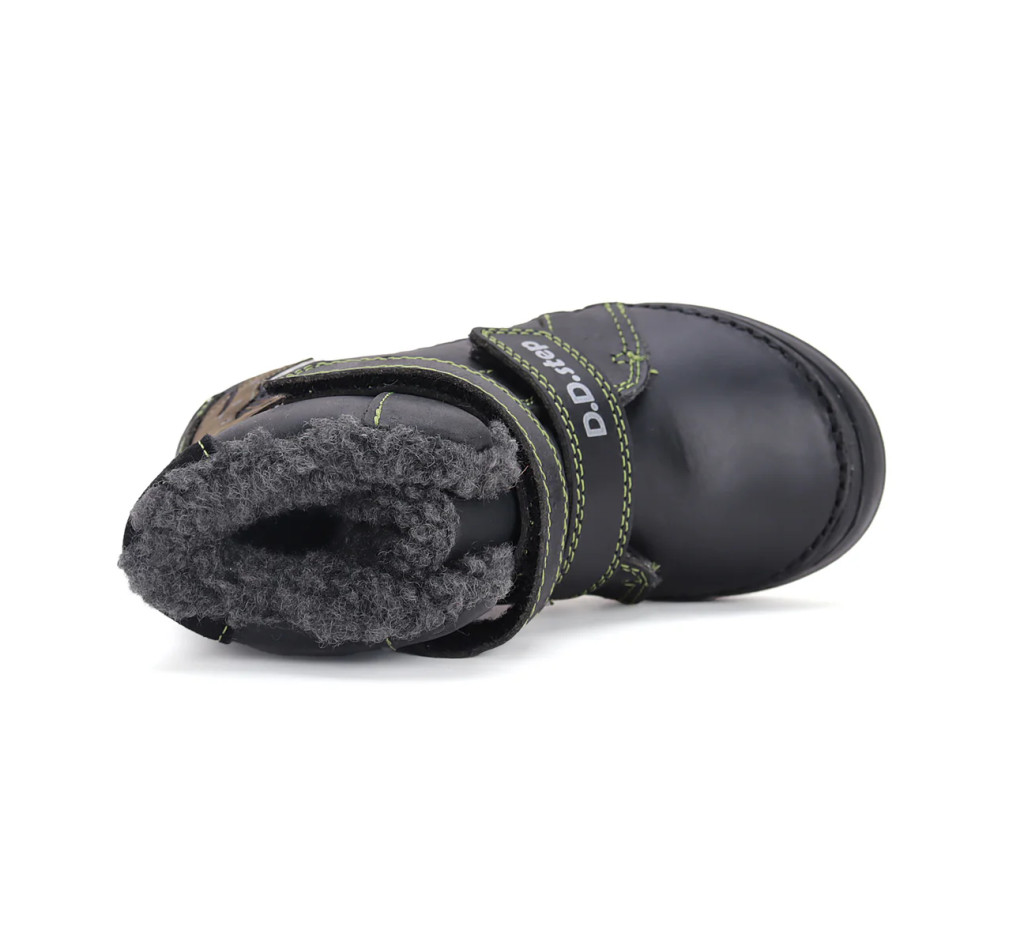 Tépőzárral  szabályozható, téli gyerekcipő kívül bőrből, belül bunda béléssel rugalmas és strapabíró gumi talpon. Magasszárú bélelt csizma. A talp orr része védi a lábujjakat. Könnyen felvehető, két tépőzáras megoldás. A bőr felsőrész gyárilag impregnált, jobban ellenáll a nedvességnek és a foltoknak. Csúszásmentes gumitalp biztonságot ad a téli időszakban.